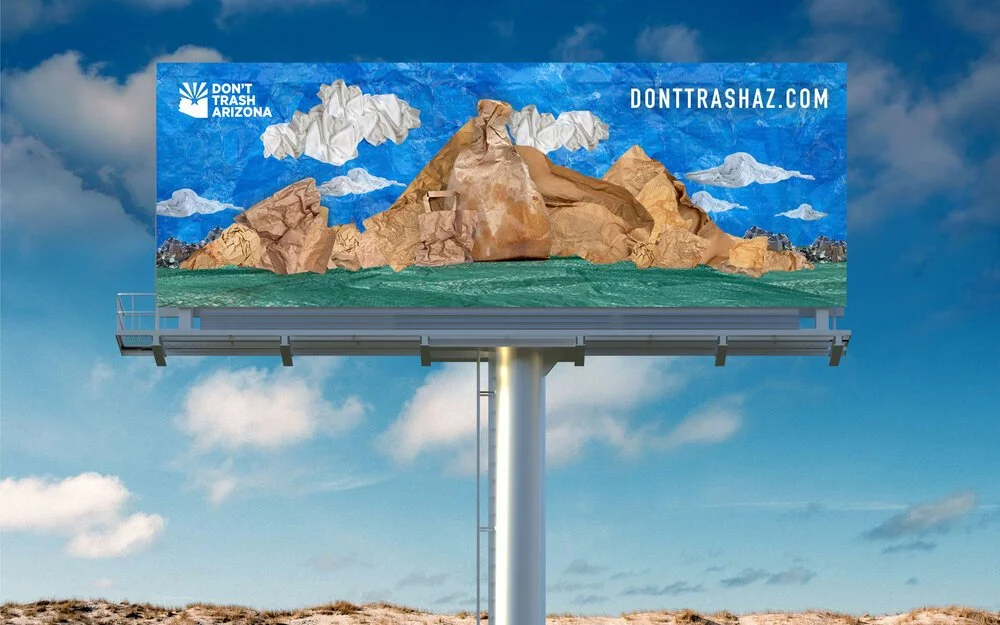 My Approach: Developed a visually interesting outdoor campaign across Maricopa County, complemented by targeted paid social media ads. The concept took iconic local landscapes like Camelback Mountain, Papago Park, and Tempe Town Lake and recreated them entirely out of trash.